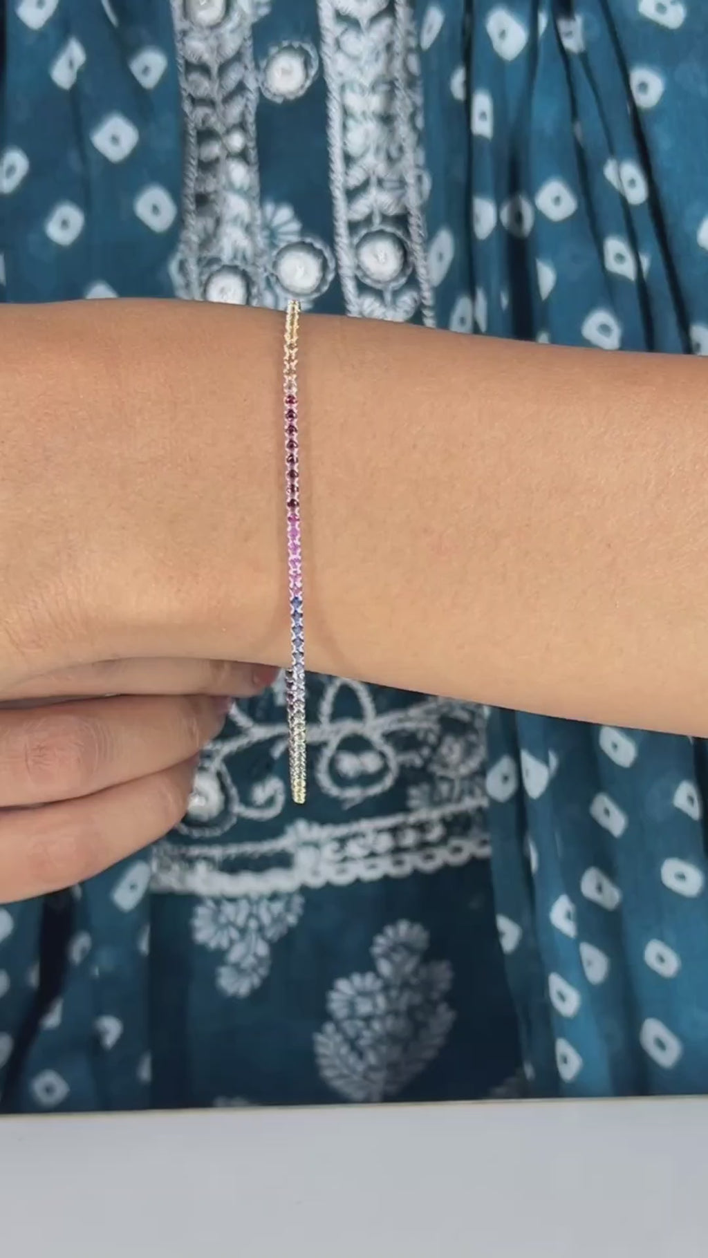 1.92 Carats Rainbow Sapphire Tennis Bracelet in Solid 14K/18K Gold