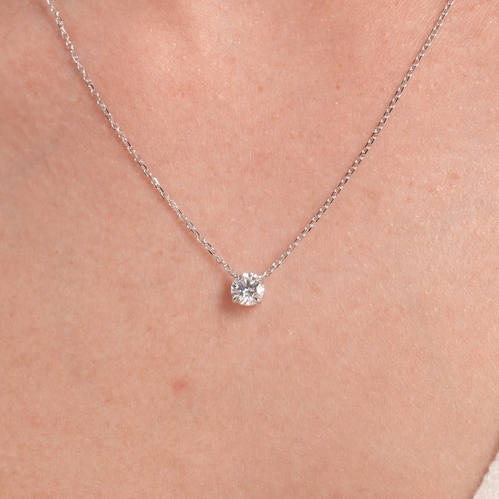 1 Carat Round Cut Prong Set Solitaire Diamond Pendant Necklace