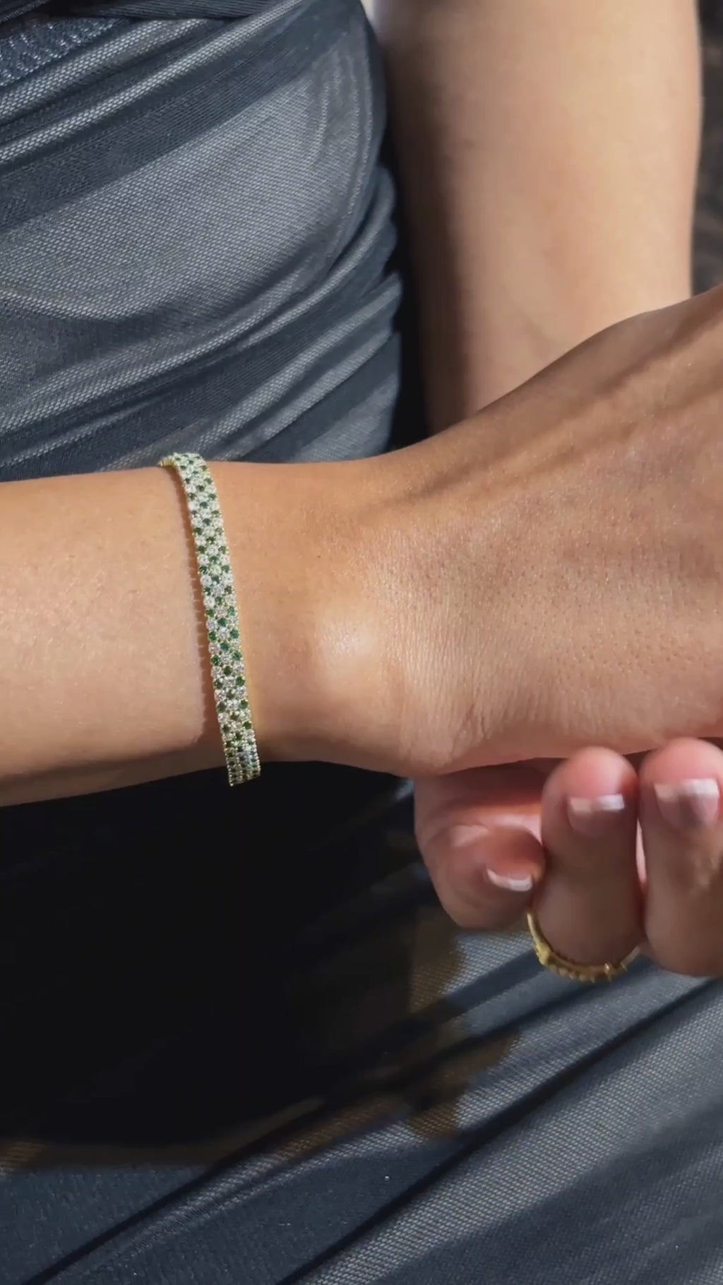 Handcrafted in 14K or 18K gold, this 5-carat three-row tennis bracelet features alternating natural emeralds and lab-grown diamonds. A striking expression of color and brilliance — perfect for weddings, anniversaries, or timeless luxury gifting.