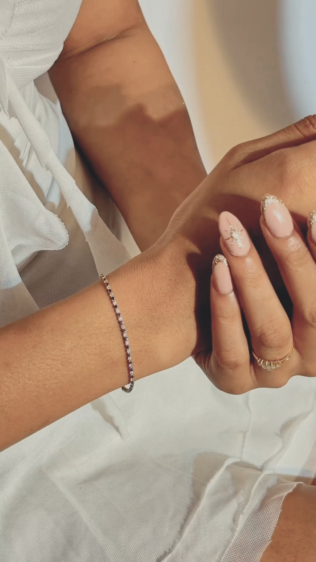Handcrafted in 14K or 18K gold, this timeless tennis bracelet features alternating natural sapphires and sparkling diamonds. A classic design that radiates sophistication — perfect for weddings, anniversaries, or elegant everyday wear.